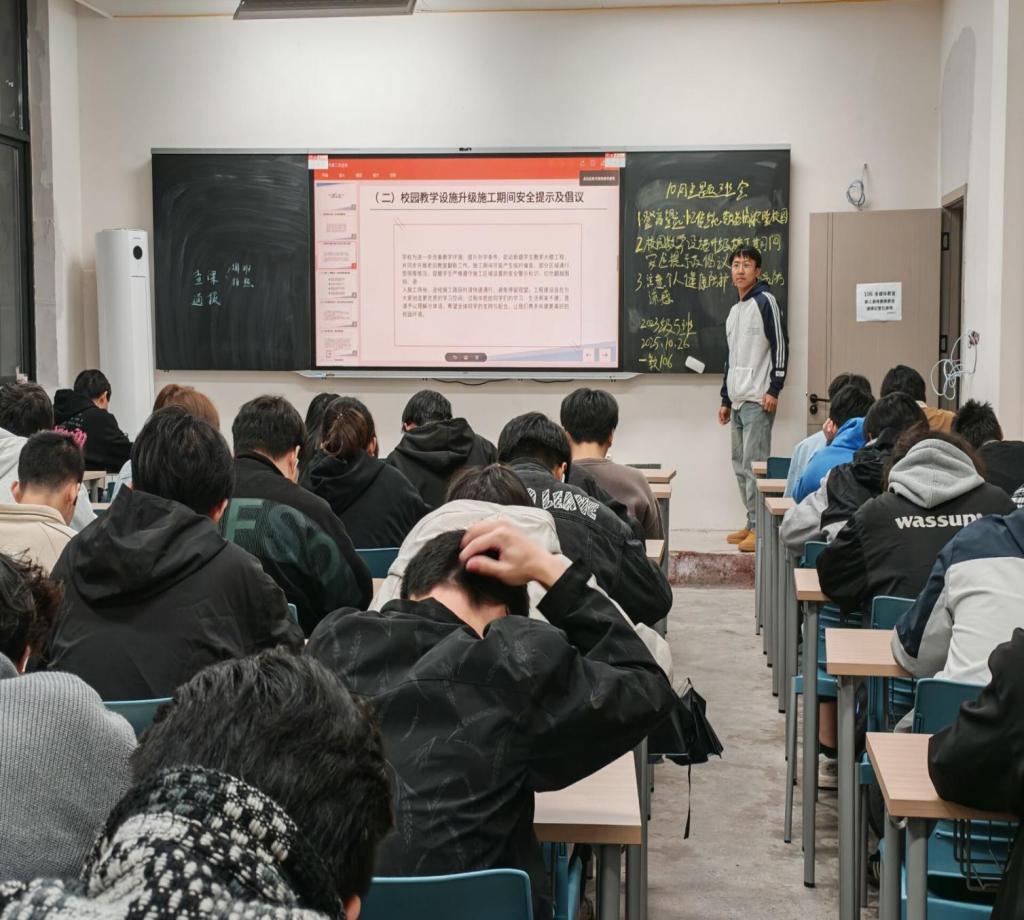 其次,面对校园教学设施升级改造带来的临时性影响,各班及时发布安全提示,呼吁全体同学理解学校长远发展之策,共同保障人身安全。此外,针对秋季流感高发期,班会从添衣保暖、个人卫生等多方面做出细致指导,深切关心学生身心健康。在交通安全方面,各班着重强调了共享电动车的使用规范,倡导“便利与秩序并存”的现代校园出行新风尚,全力守护每一位学生的出行安全。