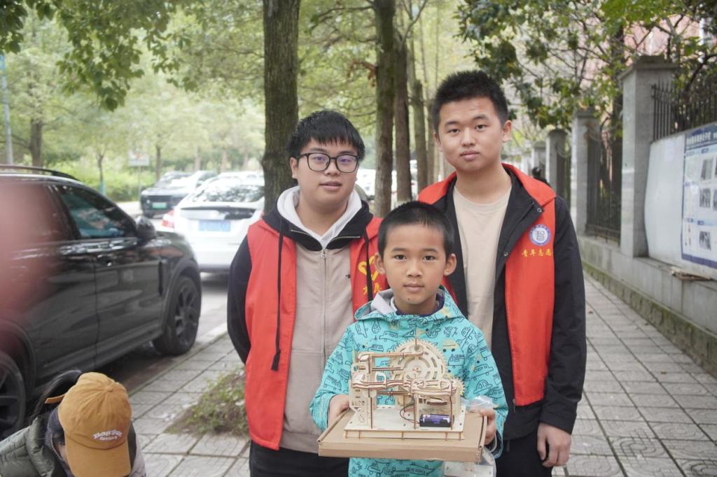 活动现场分为“科技小制作”与“义务维修”两大板块。在科技小制作区域,志愿者们向社区儿童展示了自制的科技作品,并一对一指导他们动手制作手摇风车、木质收音机等科普玩具。一场别开生面的制作比拼赛更是将活动推向高潮,让孩子们在玩乐中感受到科技的无穷魅力。