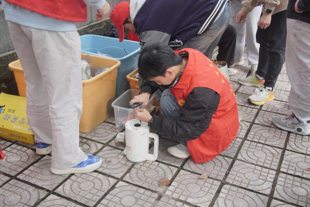 与此同时,义务维修服务活动也如火如荼地进行,志愿者们运用所学知识,耐心地为居民检修电风扇、电水壶等小型家电,让一件件旧物“重获新生”,从源头减少了电子垃圾的产生,赢得了居民们的连连称赞。