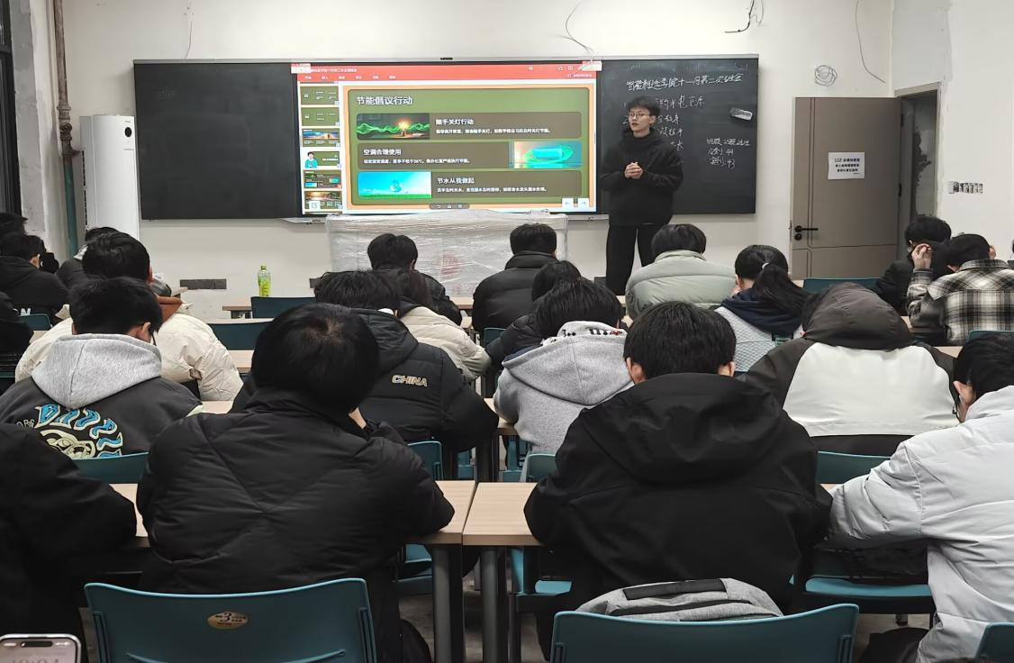 各班班长以图文讲解与场景分析相结合的方式,向学生倡议节约水电资源,强化校园文明建设。并结合冬季水电消耗特点,强调冬季节能管理知识与防冻、安全用电注意事项,引导广大青年践行绿色发展理念。同时,重申校园卫生管理规定,明确要求学生不随地吐痰、分类投放生活垃圾,保持教室、宿舍等公共区域整洁,共同保护校园自然与人文环境,为文明校园与绿色校园建设注入力量。