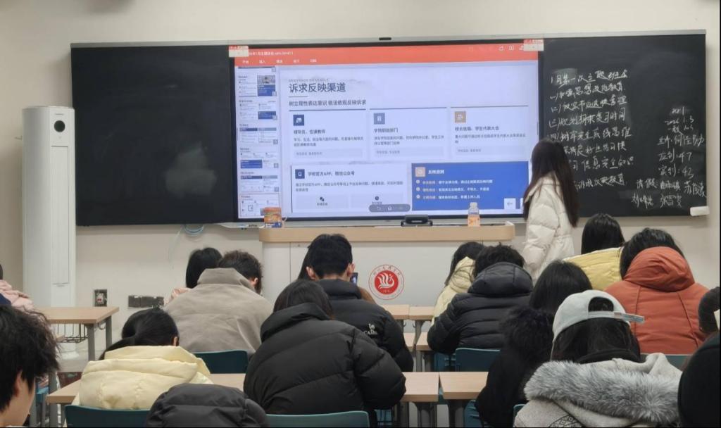 班会围绕健康生活习惯养成、网络文明建设、诉求理性表达三大核心主题展开深度教育。现场组织学生系统学习《四川文理学院违纪处分办法》,着重强调饮酒需秉持理性态度,引导大家明确自身耐受限度、做到适度节制,自觉远离酗酒风险。同时明确网络空间绝非“法外之地”,严禁传播不良信息、参与网络诈骗等违规行为,通过案例警示与规则解读,全面提升同学们的网络安全素养与风险防范能力。此外,班会还就诉求表达的合理途径与沟通技巧进行引导,助力同学们培养文明处事、理性维权的良好素养。