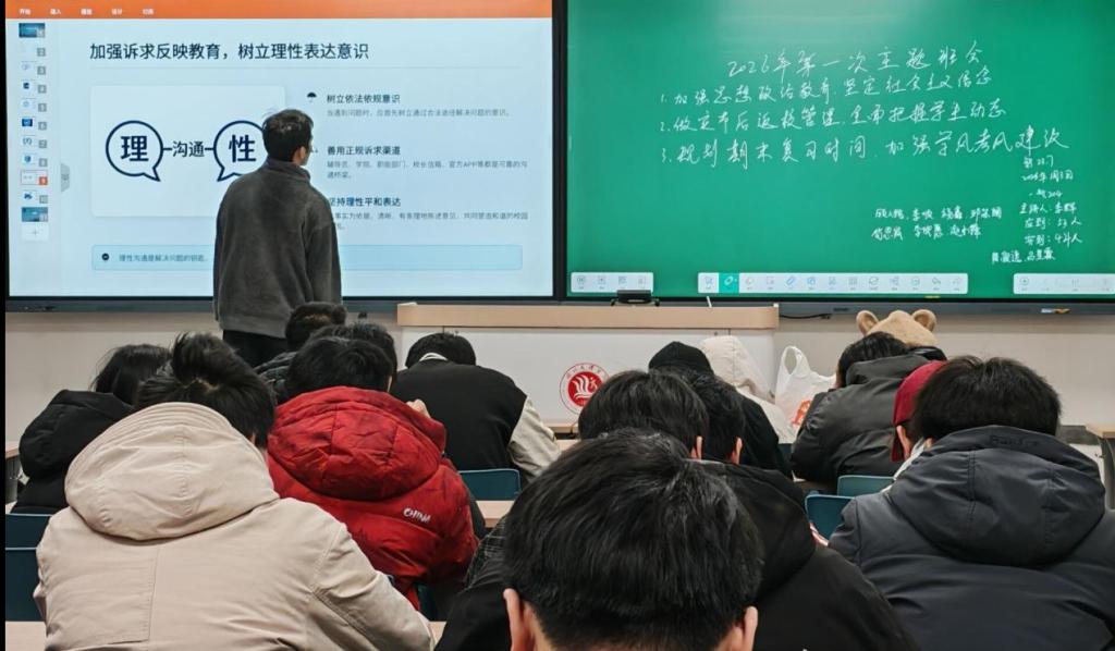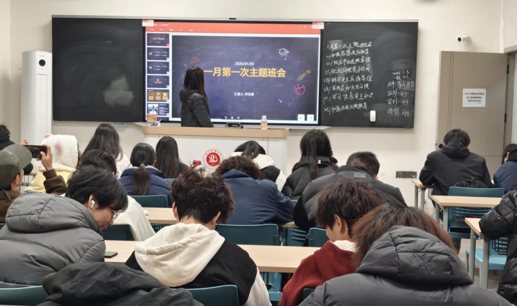 为进一步筑牢校园安全防线,强化学生日常管理效能,深化学生思想引领与行为规范教育,引导广大学生坚定社会主义信念,始终坚持正确的政治立场和政治方向,并端正学风、严守纪律、筑牢安全底线,我院于2026年1月3日成功开展一月第一次主题班会。