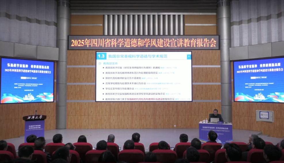 12月2日 下午,2025年四川省科学道德和学风建设宣讲教育报告会以线上直播形式顺利举办。报告会由四川省科学技术协会联合省内多家相关单位共同主办,旨在大力弘扬科学家精神,进一步推动科研作风与学风建设。四川文理学院智能制造学院积极响应学校科技处部署,认真组织全院师生在线集中收看学习。