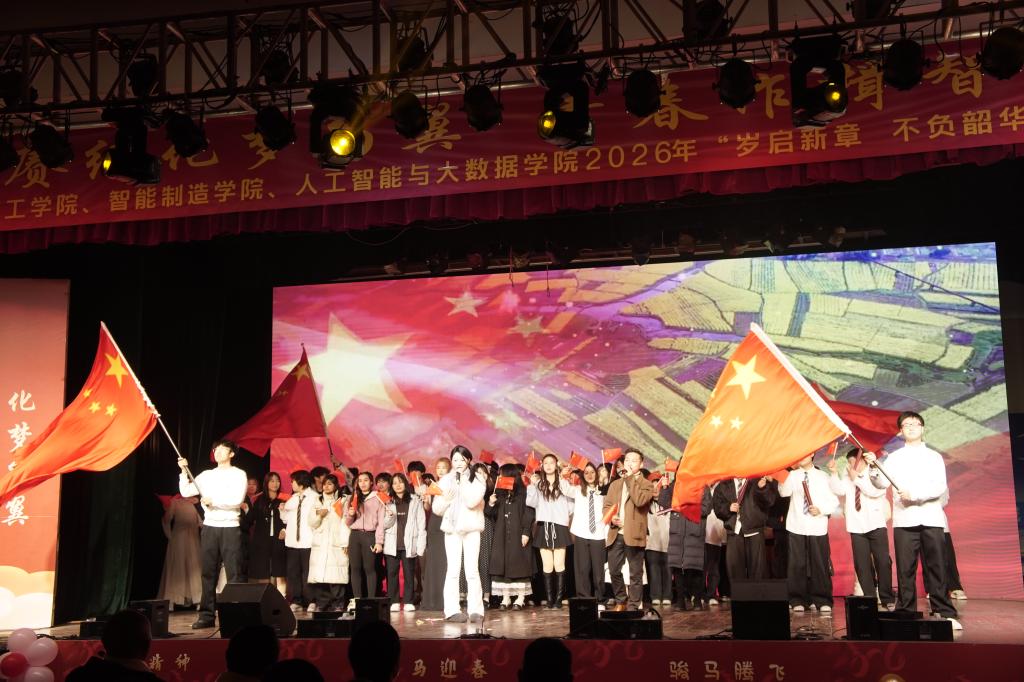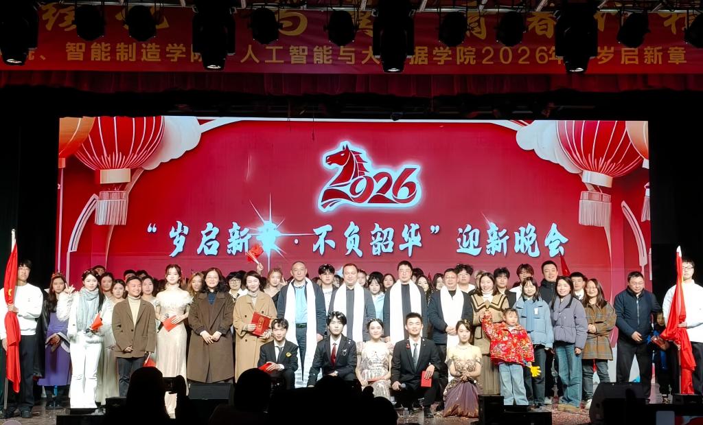 12月7日,智能制造学院联合化学化工学院、人工智能大数据学院举办“岁启新章,不负韶华”2026迎新晚会在南坝校区激情上演,三个学院师生齐聚一堂,以“跨年+抗战胜利80周年”双主题为脉络,将家国史,青春梦,科技魂熔铸于一场跨越时空的新春盛会,在辞旧迎新的时刻传承抗战精神,以奋斗姿态奔赴2026新程。本次晚会我院出席嘉宾有党委书记李涛、党委副书记吴晓燕、各办公室老师、各专任教师等。